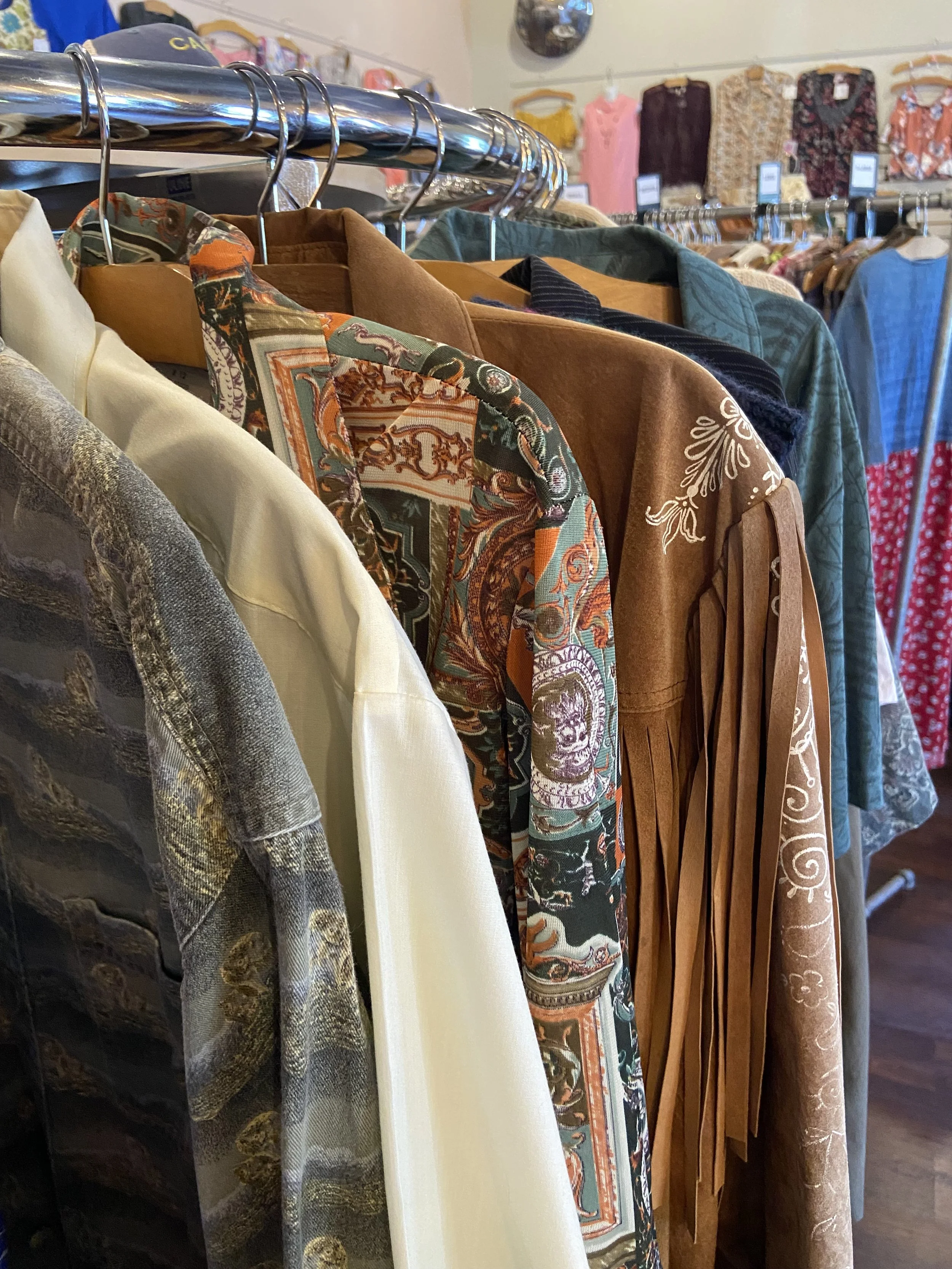 If you like a range of styles and visual textures in your closet- we are bound to have it! We carry a range of sizes XS-XXL in women’s and gender neutral styles. We have one dedicated rack for men’s styles and we hope to see more as our consignors bring us the goods. Over the years, styles and design methods change. We are seeing vintage forward looks that are true vintage or well made contemporary pieces. We also know that many brands are creating extremely fast and unethical product. At RPS, we are trying to keep that number low to showcase well-made, hardy, unique pieces.